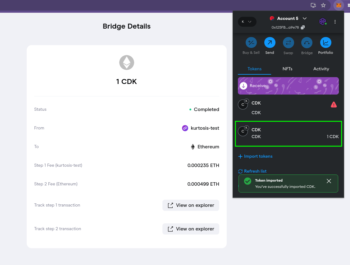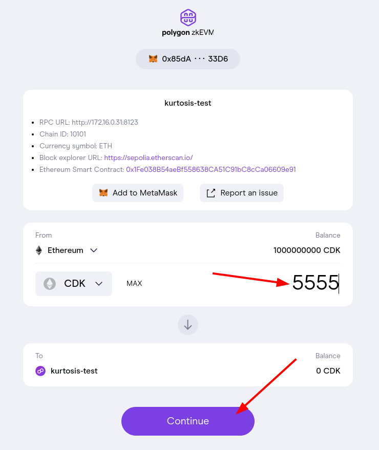 kurtosis port print cdk-v1 zkevm-bridge-proxy-001 web-uiAdd L1 and L2 RPCs to your wallet