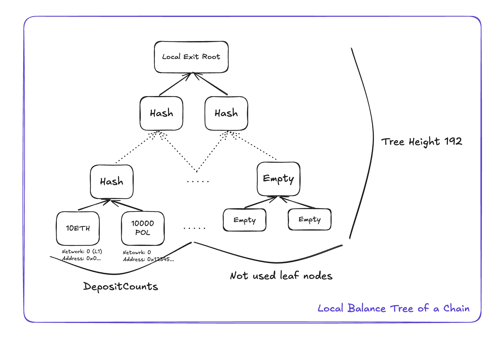 Exit Tree: Records all outgoing bridge transactions as a 32-level Sparse Merkle Tree, storing cryptographic commitments of