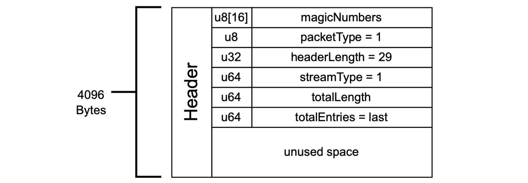 The is then followed by the , which is the total number of bytes used in the stream file.