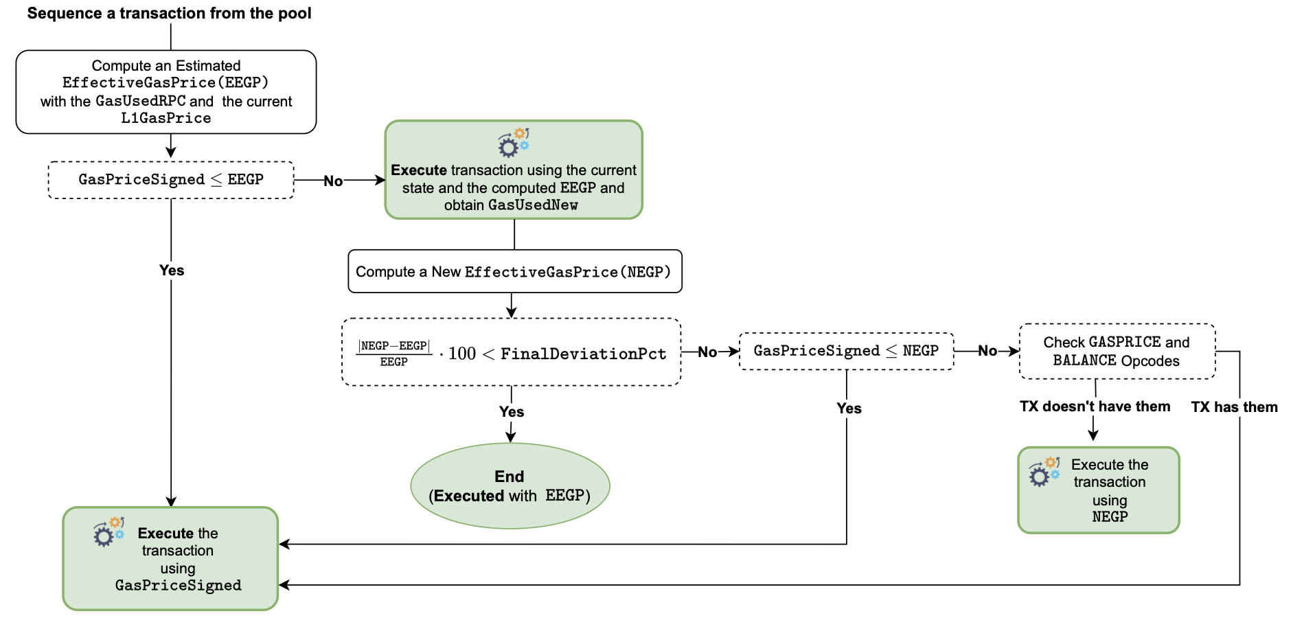 - Computing the new effective gas price (NEGP), using the current state and the EEGP.