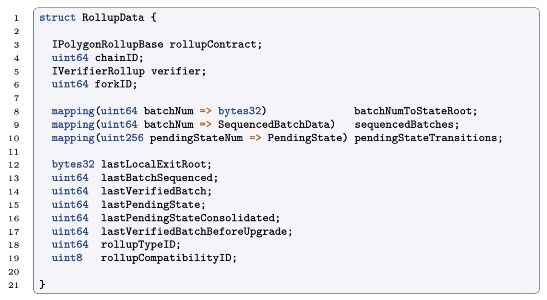Although several rollups can be of the same , it's important for each rollup store its state data. This state data is included in a structure called .