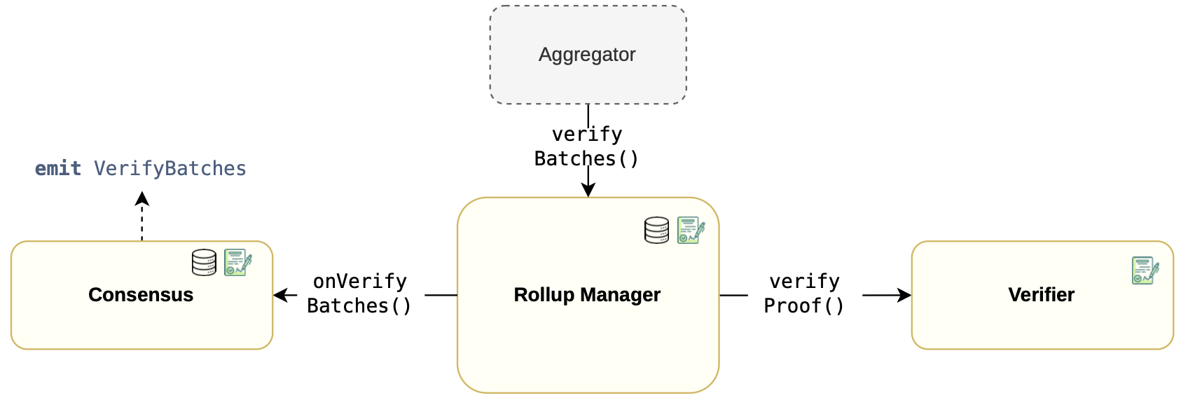 - Then the rollup manager invokes the function, which involves a secondary stateless contract.
