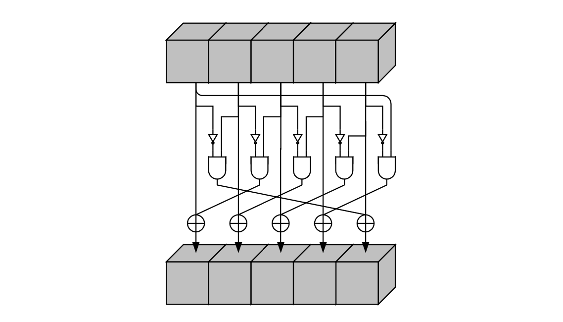 That is, for each 5-bit row, , can be summarized as the mapping of each bit, , as;