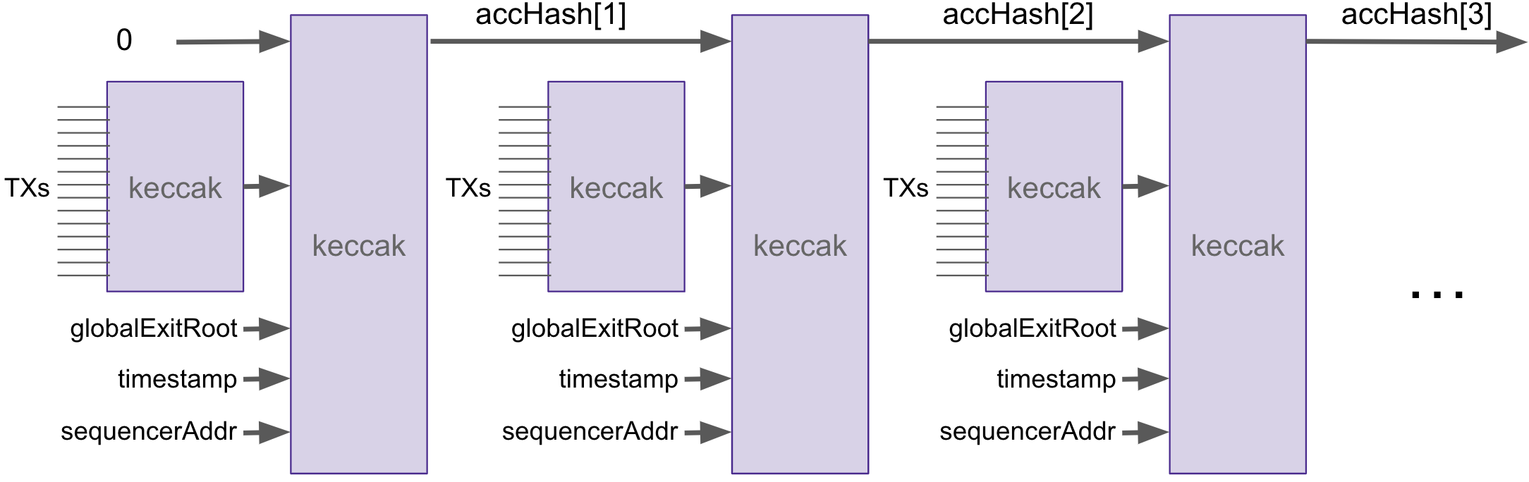 All transactions being processed are encoded into the batch via the oldAccInputHash, read "old accumulated input hash".